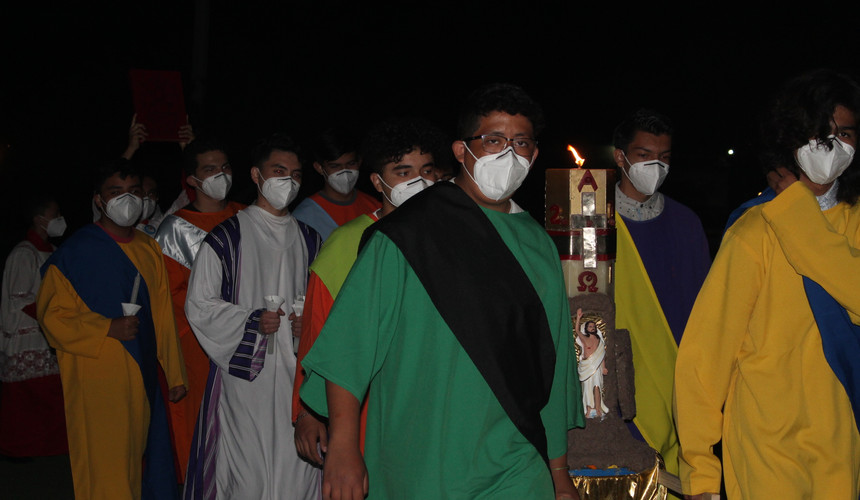 Jueves, viernes y sábado celebramos estos días santos en comunidad, iniciando con la cena del señor, adoración al santísimo, celebración de la pasión del Señor, rosario del pésame, bendición del cirio, vigilia pascual y resurrección.